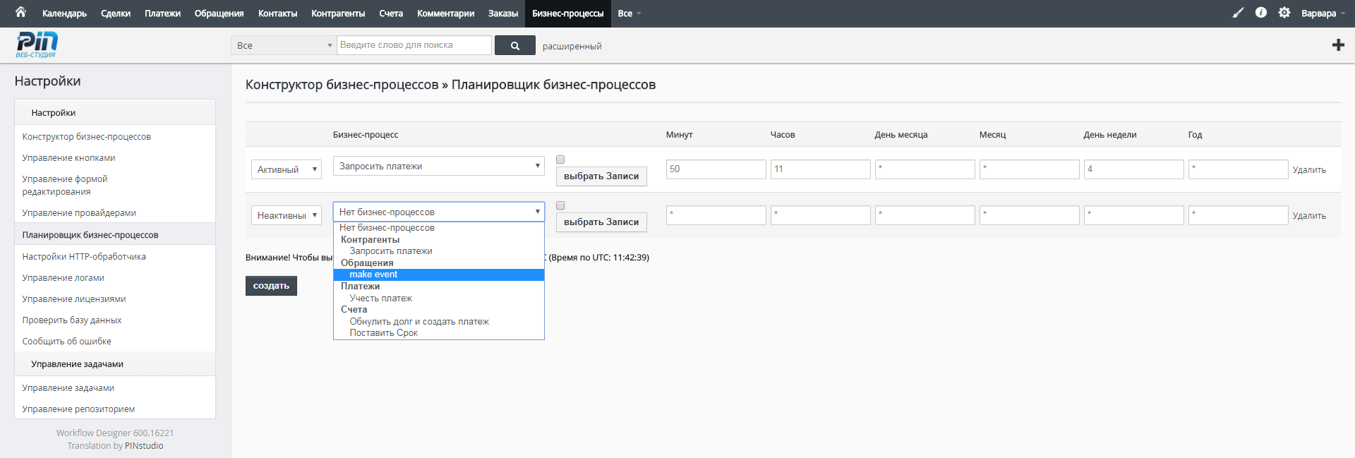 Планировщик Бизнес-Процессов